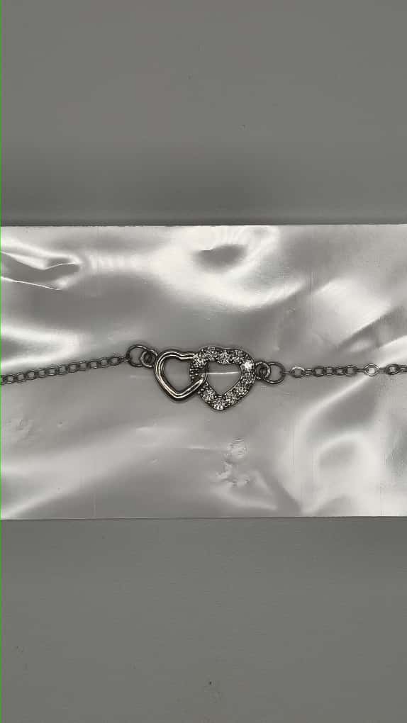 Questo braccialetto in acciaio presenta due cuoricini: uno arricchito da piccoli brillantini e l'altro dalla superficie liscia. Un accessorio elegante e semplice, perfetto per chi ama un tocco delicato e raffinato.