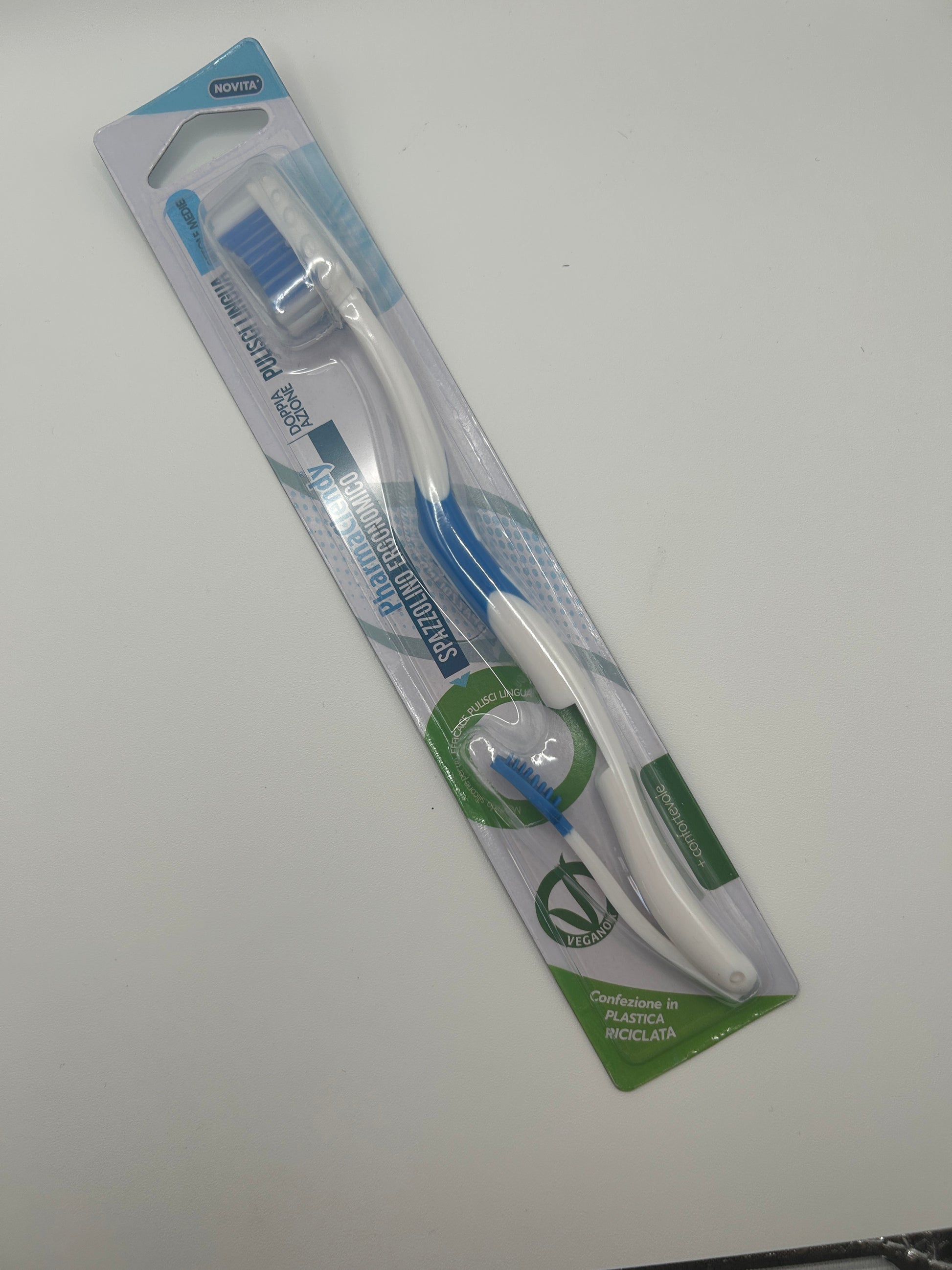 Il nostro spazzolino da denti con pulisci lingua integrato offre una pulizia completa per un'igiene orale impeccabile. Le setole di media durezza rimuovono efficacemente la placca, mentre la superficie dedicata alla pulizia della lingua aiuta a eliminare batteri e cattivi odori, garantendo un alito fresco più a lungo. La sua impugnatura ergonomica assicura comfort e facilità d’uso quotidiana. Prenditi cura del tuo sorriso con un unico strumento pensato per una pulizia approfondita e delicata.